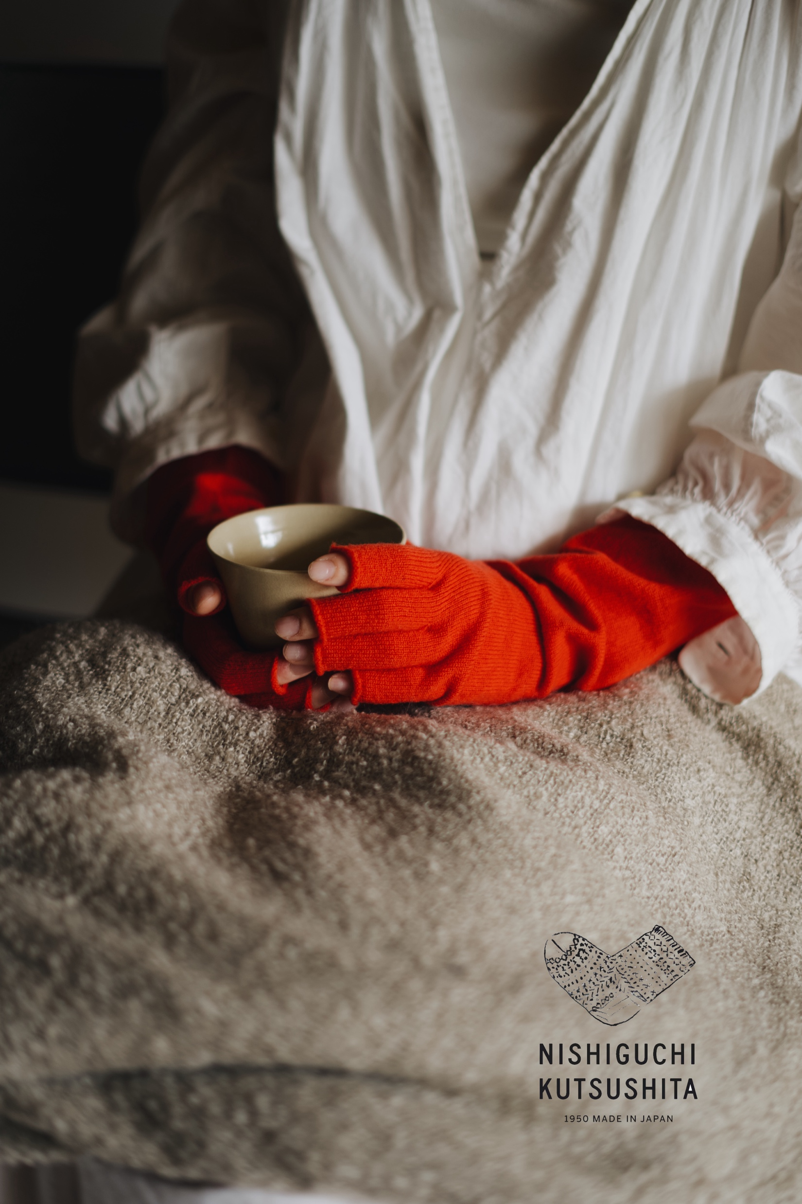 NISHIGUCHI KUTSUSHITA 是始于1950年的日本本土袜子制造厂商 Knitwin 的品牌。一直秉承着认真思考使用者感受的传统工作至今。「はくひとおもい」(与穿者思)这句话里蕴含的思考,是 NISHIGUCHI KUTSUSHITA 制造袜子的起点。