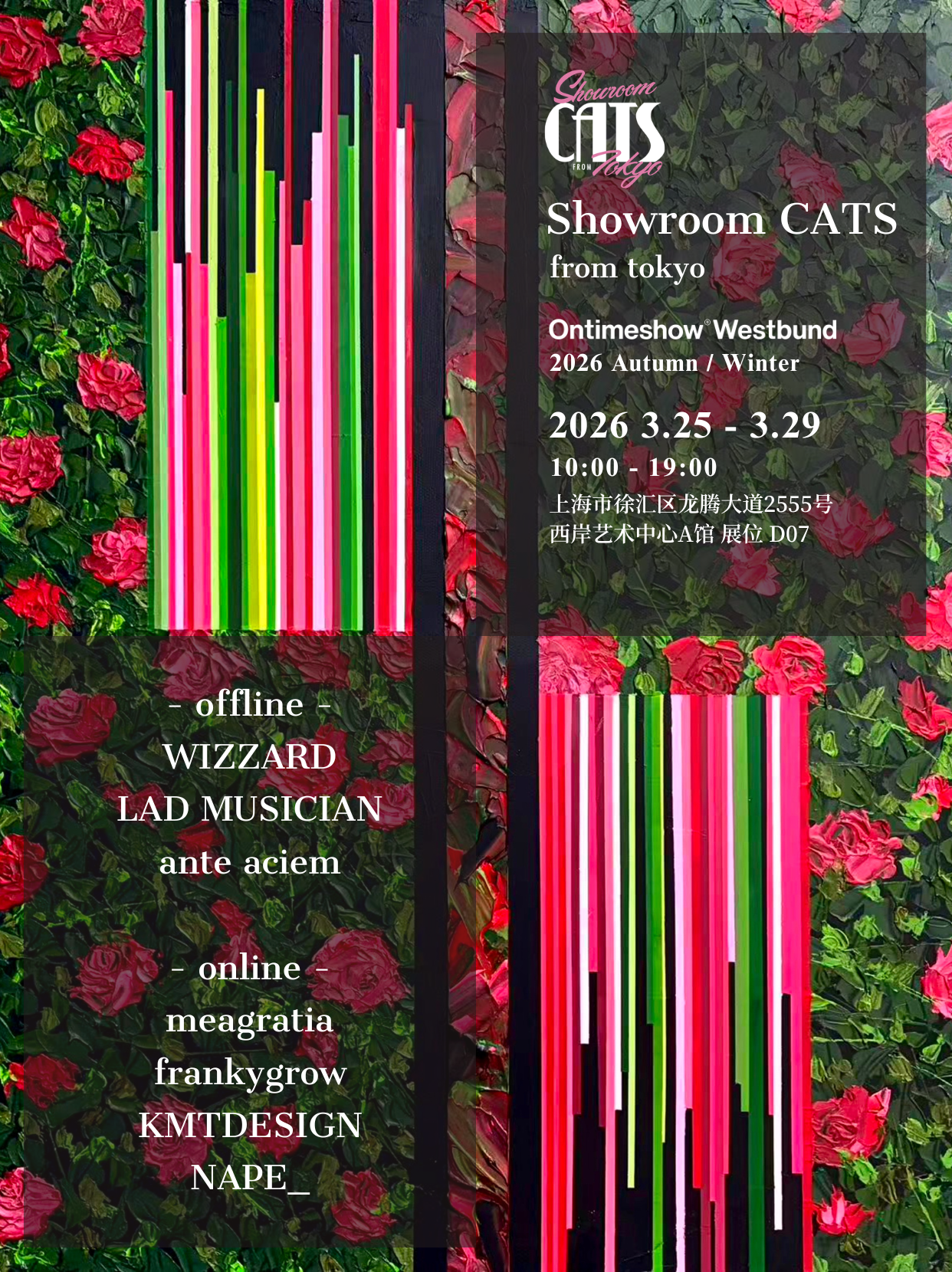 一直追求最新的东京风格和最高品质的融合。 主要在东京和上海活动的 showroom。以日本设计师品牌为中心,向世界各地发展。 儿玉公人(Kimito)担任代表兼主理人,日本著名造型师相澤树担任创意总监,摄影师富永大介担任导演。担任代表的 Kimito 在音乐方面也有很深的造诣,以 CATS SOUNDS 的名字定期参加 DJ PARTY。