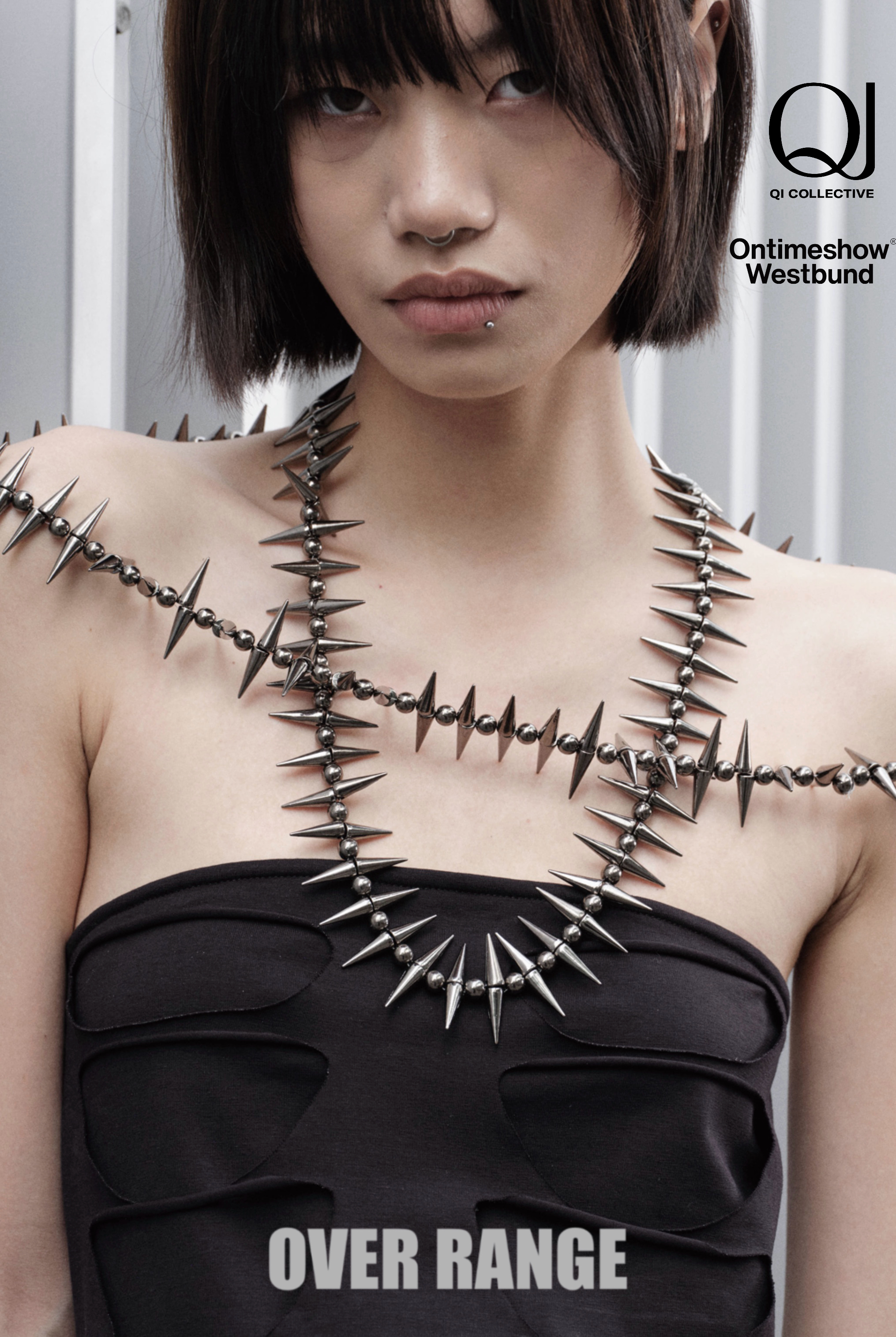 OVER RANGE 26AW,《GLITCH IN THE FLESH》像素溃散成噪点,赛博空间里浮出废土的胎记。我们拾取那些被遗弃的碎片——在光栅与阴翳的交界,旧时代的朋克魂魄重新再现。用破旧裁作甲胄,经岁月啃噬。金属的骨骼沿脊线游走,等待被某个失传的代码重新编译。整片黑。吸纳所有霓虹与尘埃的整片黑。
